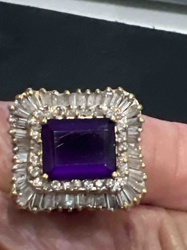 Silver-Tone Ring with Rectangular Purple Gemstone