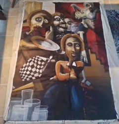 Expressionist Social Scene Painting by Roy