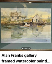 Alan Franks Original Framed Watercolor Painting - Coastal Harbor Scene