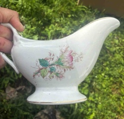 Antique Haviland-Style Porcelain Sauce Boat with Moss Rose Motif