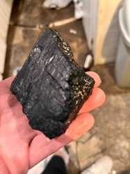 Raw Black Tourmaline Crystal with Gold-Tone Inclusions
