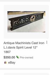 L.L. Davis 12-Inch Cast Iron Filigree Spirit Level