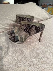 Snakeskin-Print Stiletto Heeled Sandals with Metallic Trim