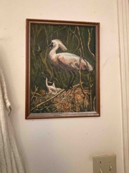 Framed Oil Painting of a Roseate Spoonbill and Nestlings