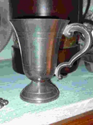 Vintage Pewter Footed Mug with Scroll Handle