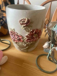 Vintage Pottery Vase with Floral Relief and Rope Motif