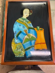 Chinese Reverse Glass Painting of a Seated Court Lady