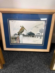 Coastal Pelican and Pier Framed Watercolor Print