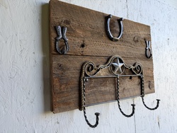 Western-Style Reclaimed Wood Wall Rack with Horse and Texas Star Motifs