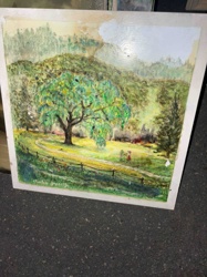 Framed Hand-Painted Cottage Landscape Art