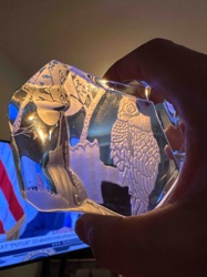 Signed Intaglio Etched Crystal Art Glass Paperweight