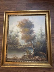 Framed Original Landscape Painting: Forest and River Scene (Signed, 1981)