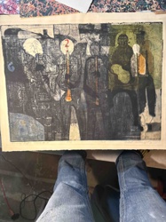 Abstract Painting on Paper MCM Style