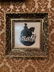 Framed Petit Point Silhouette Embroidery of a Lady Sidesaddle