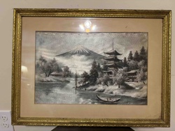 Japanese Silk Embroidery Landscape of Mount Fuji and Pagoda