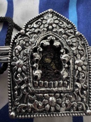 Tibetan Repoussé Silver Ghau (Amulet Box) featuring Six-Armed Mahakala