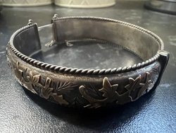 Vintage Sterling Silver Aesthetic Movement Engraved Hinged Bangle Bracelet