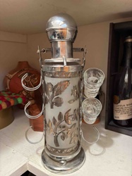 Vintage Silver-Overlay Glass Caddy Decanter Set