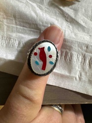 Vintage Zuni Cardinal Inlay Sterling Silver Ring