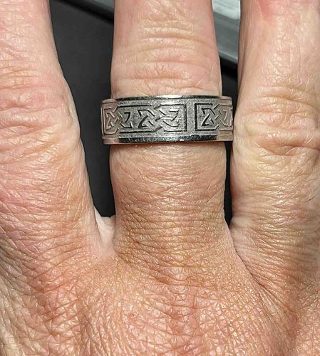 Celtic Knot Etched Silver-Tone Band Ring