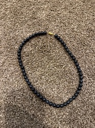 Black Round Bead Necklace with Gold-Tone Barrel Clasp