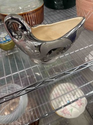 Mid-Century Modern Silver Electroplated Ceramic Swan Planter