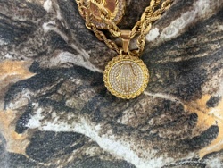 Gold-Tone Memory Portrait Photo Medallion Pendant on Rope Chain