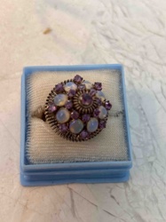 Vintage Amethyst and Simulated Opal Cluster Ring