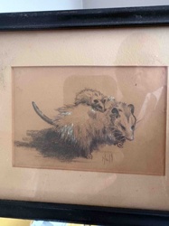 Wildlife Sketch of Opossum and Young, signed 'Hall'