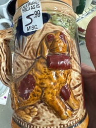 Relief-Decorated Ceramic Hunting Dog Beer Stein