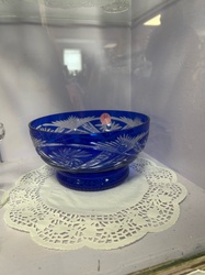 Cobalt Blue Cut-to-Clear Lead Crystal Bowl