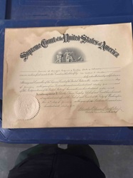 Supreme Court of the United States Admission Certificate for Thomas A. Sawyer