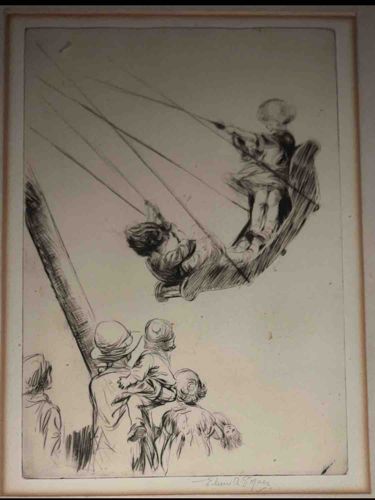 'The Swing' Drypoint Etching by Eileen Alice Soper