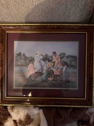 Framed African American Folk Art Print of Women and Children in a Field