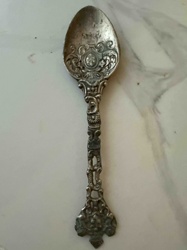 Antique Ornate Silver-Plated Souvenir Spoon with Embossed Figure