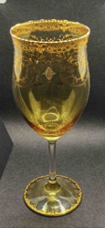 Vintage Amber Tiffin Glass Minton Wine Goblet with Gold Encrusted Lace Trim