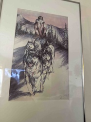 Framed Sled Dog Team Lithograph