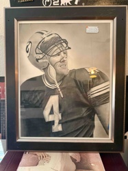 Signed Brett Favre Pencil/Charcoal Portrait (1998)