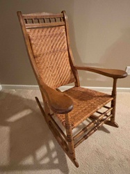 Antique Oak Platform Rocker with Upholstered Seat and Back