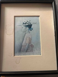 Mid-Century Profile Portrait Print of a Young Girl in Straw Hat