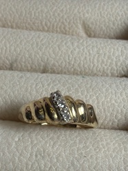 Gold Ribbed Band with Diamond-Set Diagonal Bar