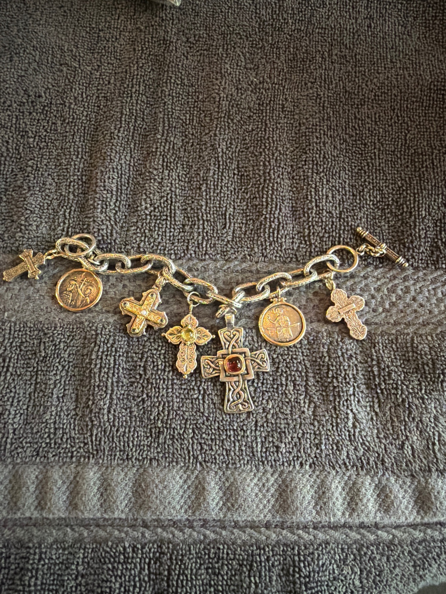 Konstantino Sterling Silver and 18K Gold Religious Charm Bracelet
