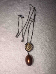 Sterling Silver Druzy and Chocolate Pearl Pendant Necklace