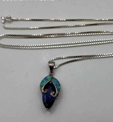 Sterling Silver Blue Opal and Sapphire-Colored Pendant on Box Chain