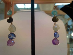 Multi-Stone briolette drop earrings with gold wire wrapping