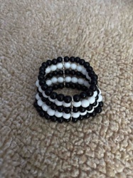 Multi-Row Black and White Beaded Stretch Cuff Bracelet