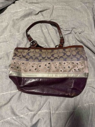 Coach Striped Patchwork Signature Canvas and Leather Tote