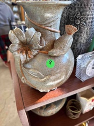 Studio Pottery Bulbous Vase with High-Relief Lily and Hummingbird