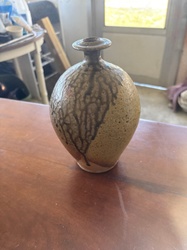 Studio Pottery Ovoid Bud Vase with Ash Glaze