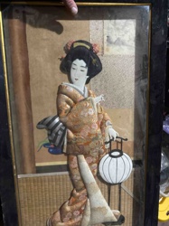 Vintage Japanese Oshie-e Padded Silk Collage of a Bijin (Beauty)